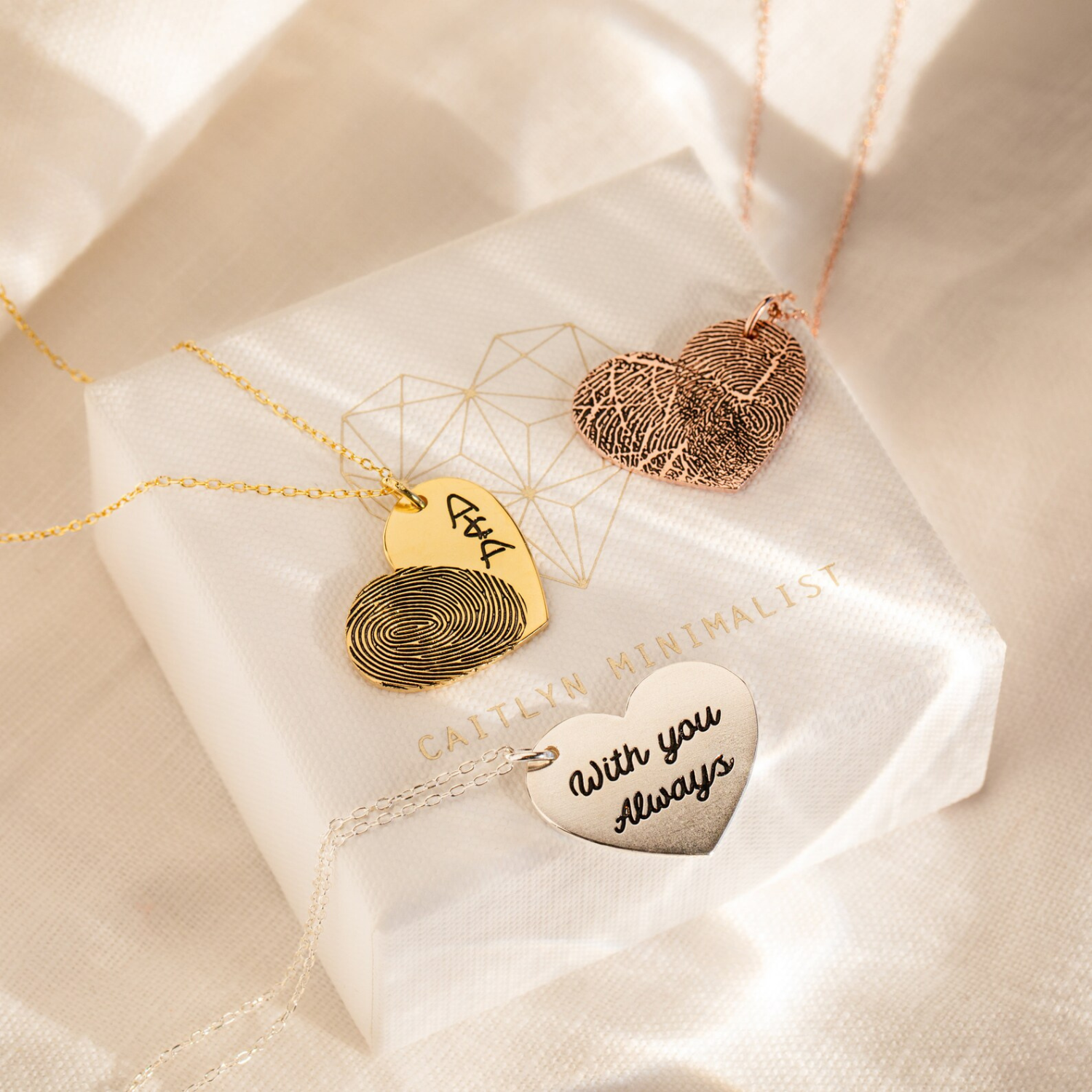 Celebrate everlasting memories with this Actual Fingerprint Necklace 💖 — a beautiful blend of sentiment and style. Featuring your loved one's real fingerprint and handwriting, this heart-shaped charm is a touching memorial piece or personalized gift.