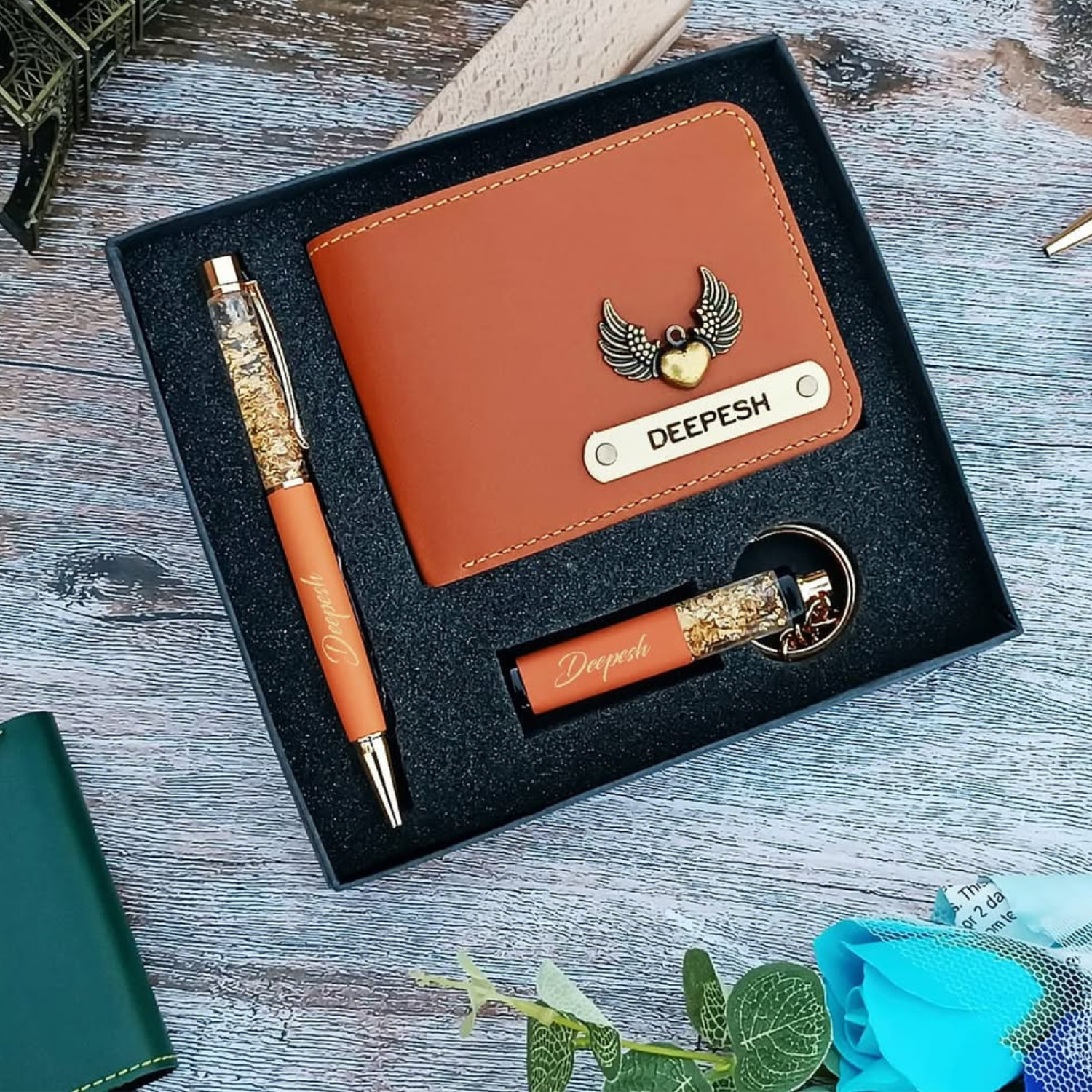 | Material | Faux Leather (Wallet); Metal (Pen & Keychain) |